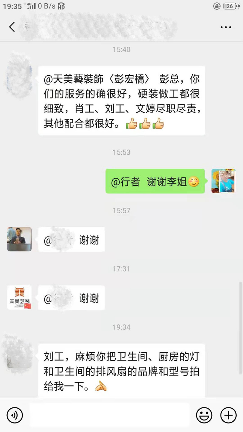 你們的服務(wù)的確很好,硬裝做工都很細(xì)致,肖工、劉工、文婷盡職盡責(zé),其他配合都很好。