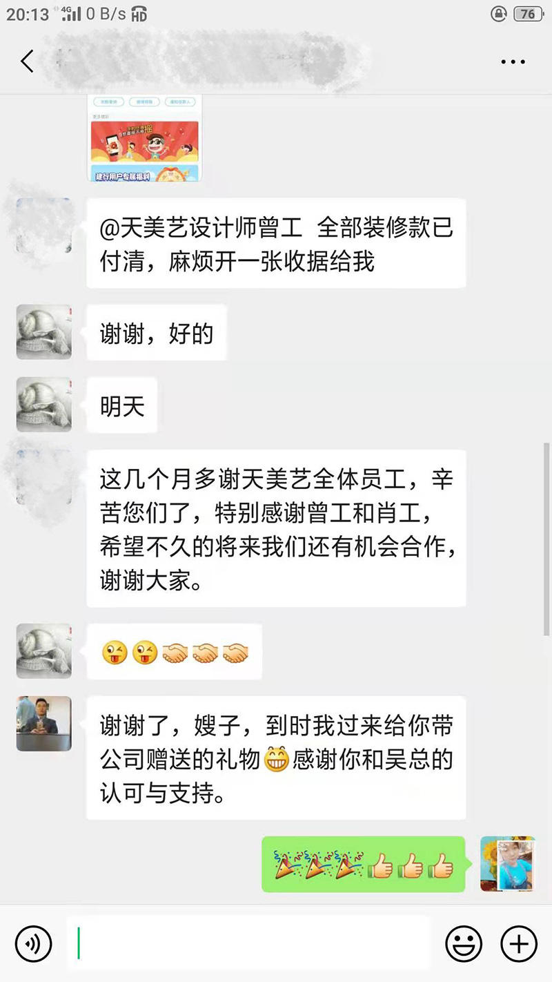 這幾個(gè)月多謝天美藝全體員工,辛苦您們了,特別感謝曾工和肖工,希望不久的將來(lái)我們還有機(jī)會(huì)合作,謝謝大家。