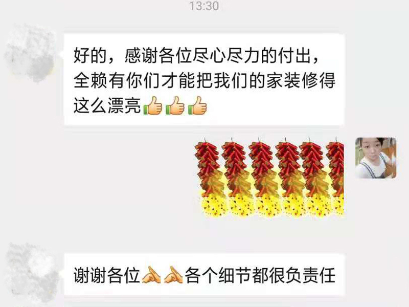 感謝各位盡心盡力的付出,全賴有你們才能把我們的家裝修得這么漂亮,謝謝各位,各個細(xì)節(jié)都很負(fù)責(zé)任。