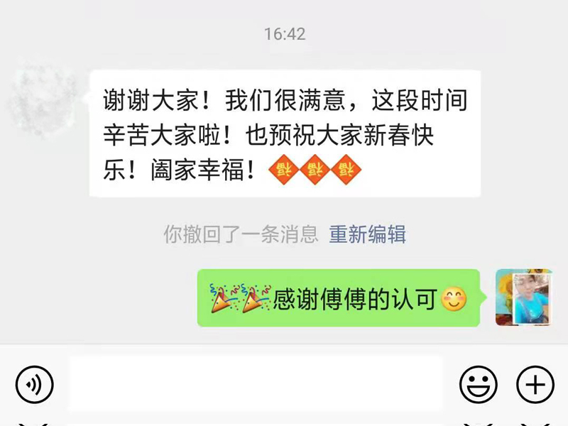 謝謝大家!我們很滿意,這段時間辛苦大家啦!也預(yù)祝大家新春快樂!闔家幸福!