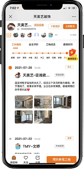 為了方便您與我們?cè)谠O(shè)計(jì)和施工階段的溝通,我們會(huì)建立高效溝通平臺(tái),董事長(zhǎng)進(jìn)群全程監(jiān)督。